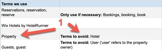 2. Descriptions and explanations of why writers need to stick to those terms.